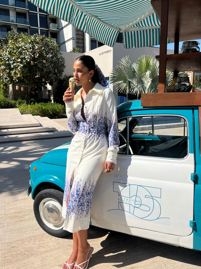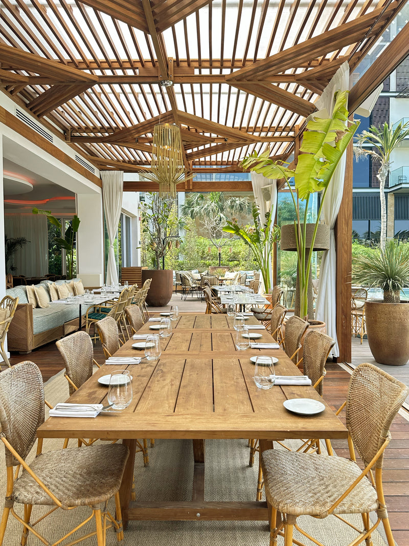 La Cantine Beach’s vibe is the epitome of elegance. It’s the kind of place that feels like an escape to perfect paradise, and as you throw on a summer dress painted in bright blue hues, you almost match the tides of their azure waters. Whether amongst the fashion elite or bathing in the sun on a solo trip, the space is made to make you feel at ease.