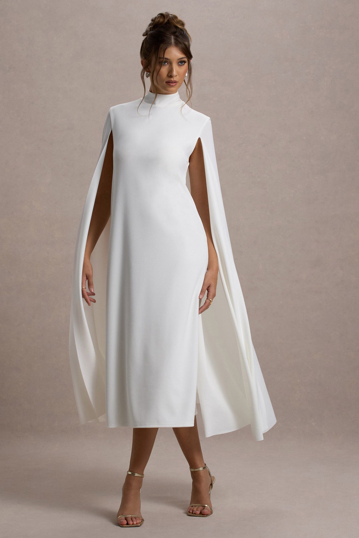 Defined by bold sophistication and graceful design, Carnation is a striking choice for your next elegant affair. Crafted from our premium scuba crepe, this white long-sleeve midi dress features a dramatic cape detail that cascades beautifully, exuding modern glamour. The tailored silhouette flatters your figure, while the structured fabric ensures a flawless fit. Make a statement at your next event by pairing Carnation with sleek heels and understated accessories for a look that is effortlessly chic and undeniably memorable.
