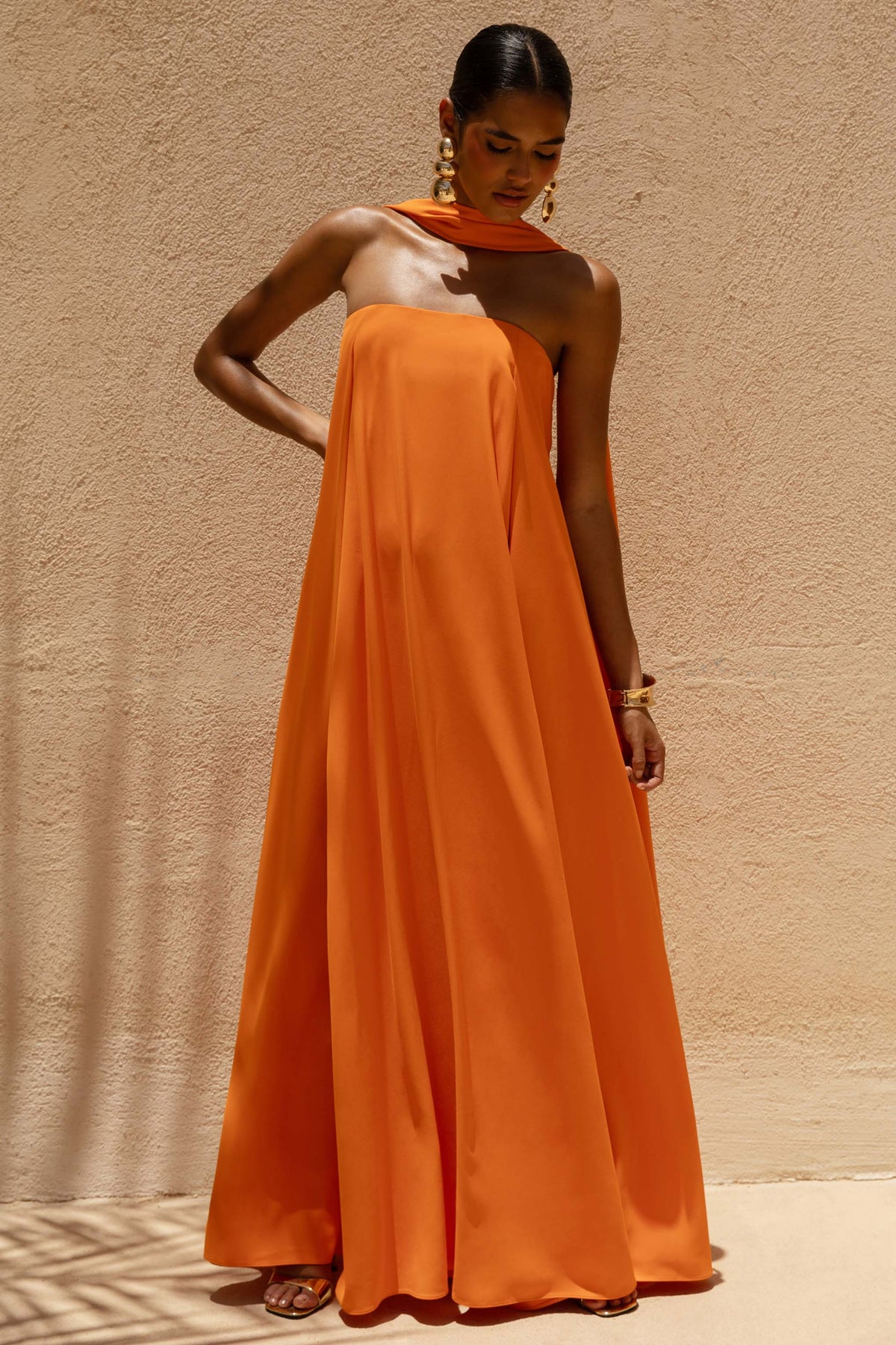 Turn heads from the moment you arrive in Cerise, a statement maxi designed for unforgettable entrances. Crafted from our premium woven in a vibrant orange hue, this striking dress is the definition of effortless glamour. Featuring a sleek bandeau neckline and statement scarf detail that drapes with undeniable drama, Cerise delivers high-impact elegance from every angle. The open-back design adds a sultry edge, while the flowing maxi length ensures you move with grace all night long. A must-have in your suitcase this summer.