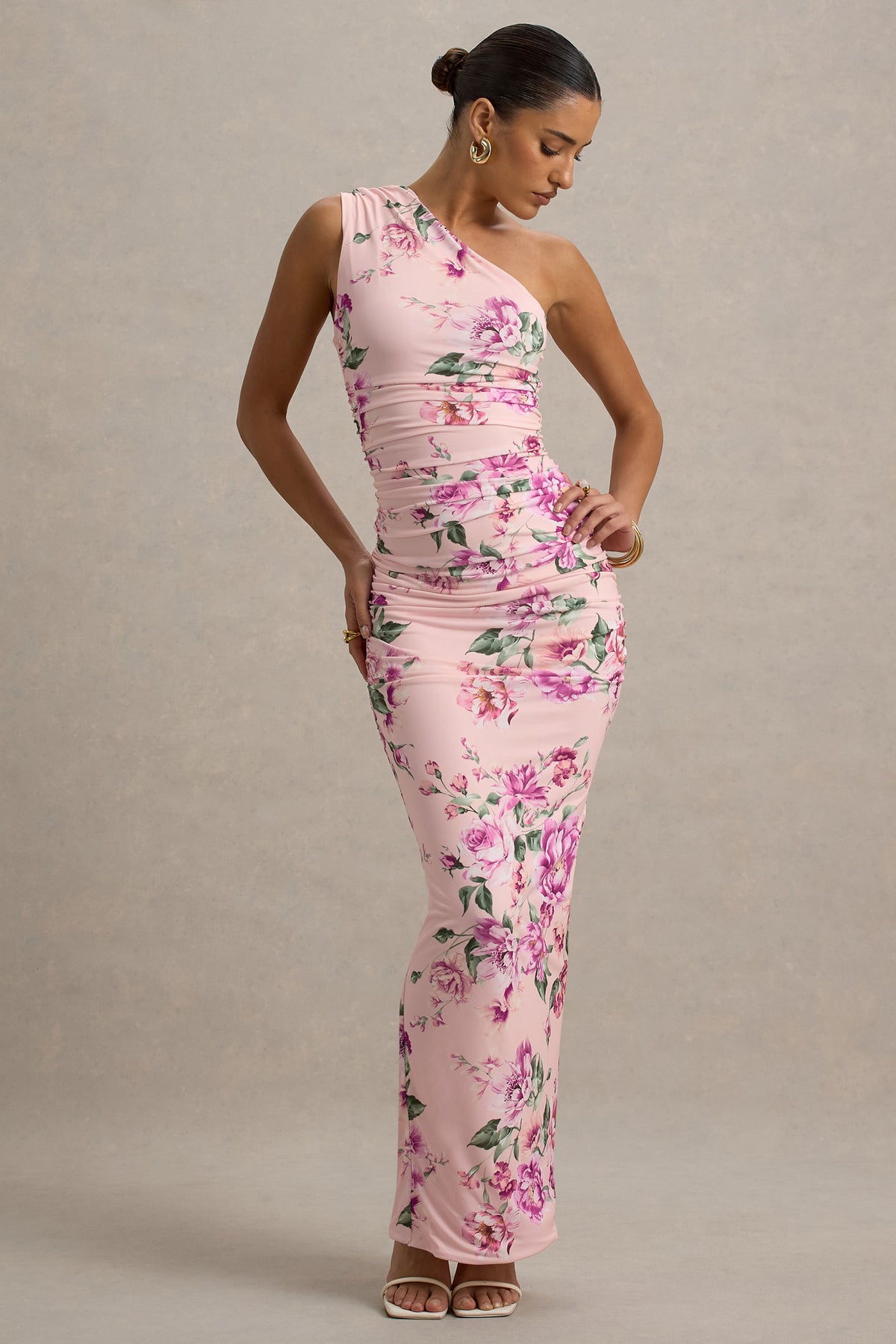 A core wardrobe essential, captivate from all angles in Dalarie. Designed in our dual-layered jersey renowned for its sculpting capabilities, this bright floral print maxi dress is further enhanced by full body ruching. Compliment its asymmetric neckline with a simple sleek bun and glistening earrings for your next date night.