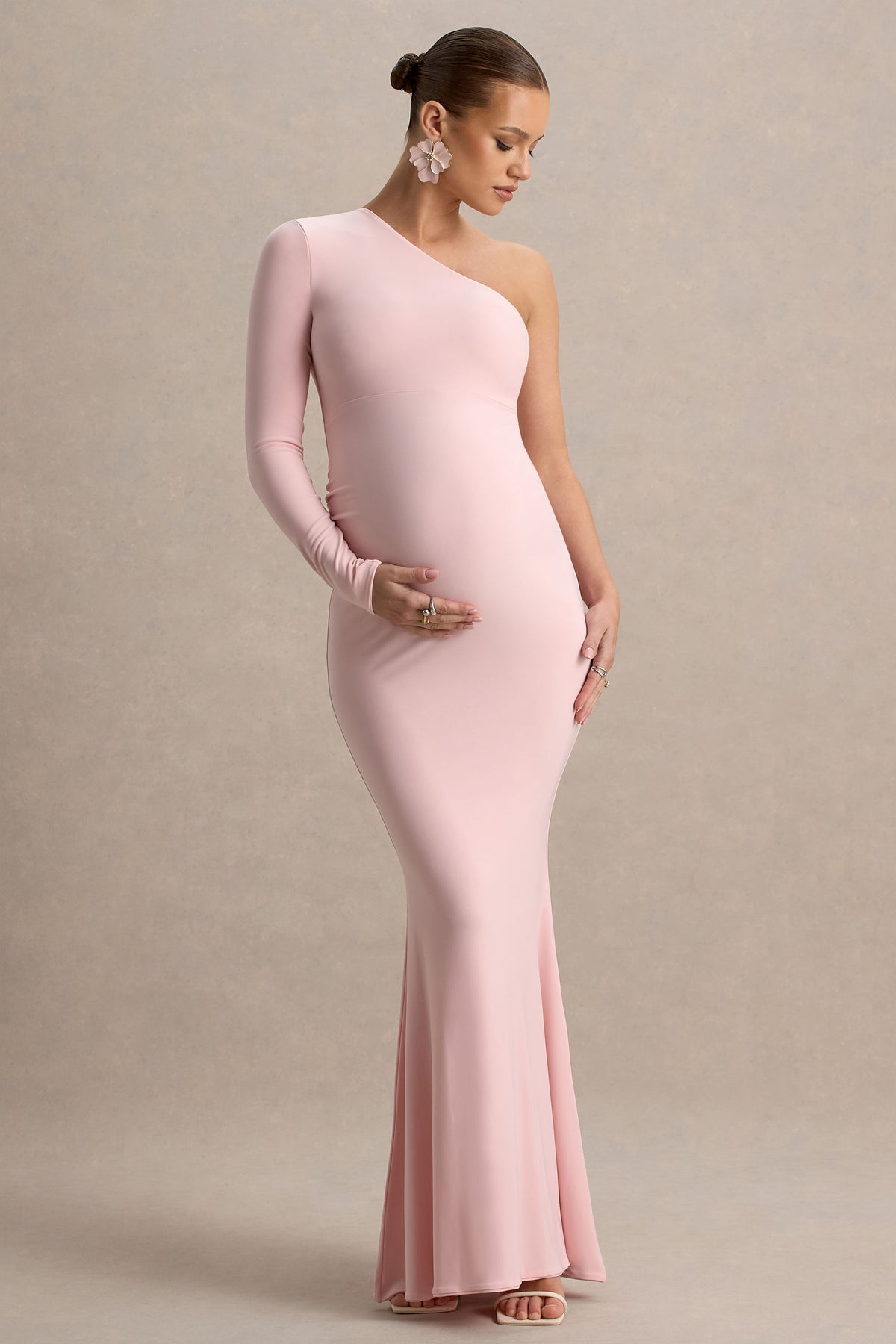 From baby showers to weddings, Heloise will be your go-to for any dressed up moment. Curated in a soft pink shade of our premium stretch jersey, this dress not only sculpts your figure but provides utter comfort. The asymmetric neckline delicately highlights your decolletage, adding a touch of elegant femininity. Style with gold accessories and impress any room you walk in.
