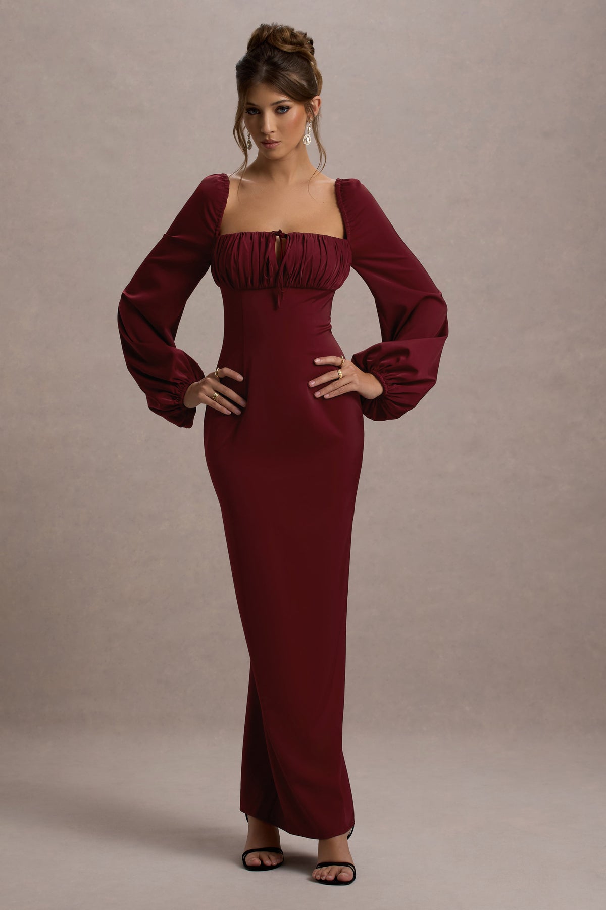 Nika is a captivating choice for your next special event, designed to bring timeless elegance and modern flair. Crafted from our premium berry satin, this maxi dress features a striking square neckline and voluminous balloon sleeves that add a dramatic touch. The lustrous satin fabric flows beautifully, creating a sleek silhouette that flatters your curves, guaranteeing to steal the spotlight at your next occasion.