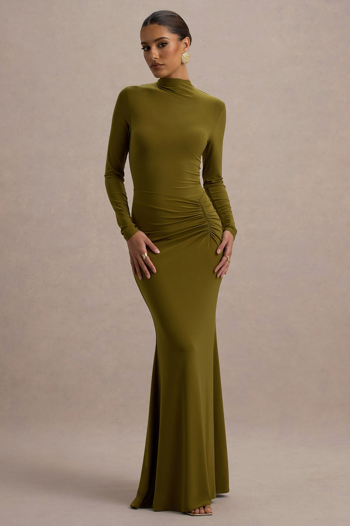 Step into effortless elegance with Reid, a green-hued maxi dress designed to make an impression. Crafted from our premium jersey, this dress features long sleeves and a flowing silhouette which moves gracefully, making Reid perfect for formal evenings, weddings, or special occasions. Pair it with subtle heels and delicate accents for a look that radiates sophistication and charm.