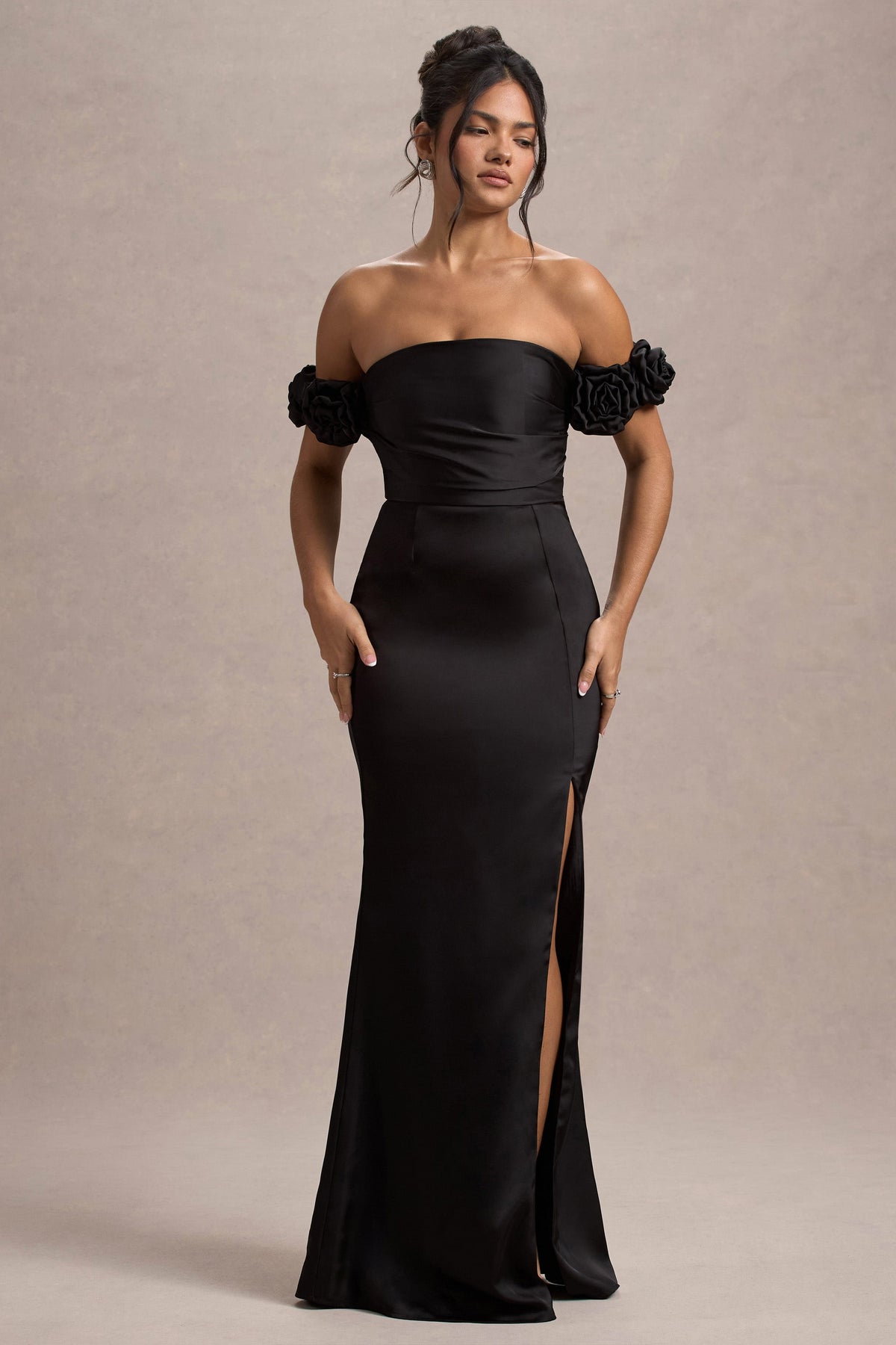 Defined by its romantic details and luxurious fabric, Senseless is a stunning option for your next special occasion. Crafted from our premium stretch satin, this black bardot maxi dress drapes elegantly over your silhouette, ensuring both comfort and allure. Adorned with delicate floral prints, the off-the-shoulder neckline exudes timeless femininity, while the sleek design creates an effortlessly glamorous look. Perfect for evening events or formal celebrations, let Senseless stand out with delicate jewellery and strappy heels for a look that's pure elegance.