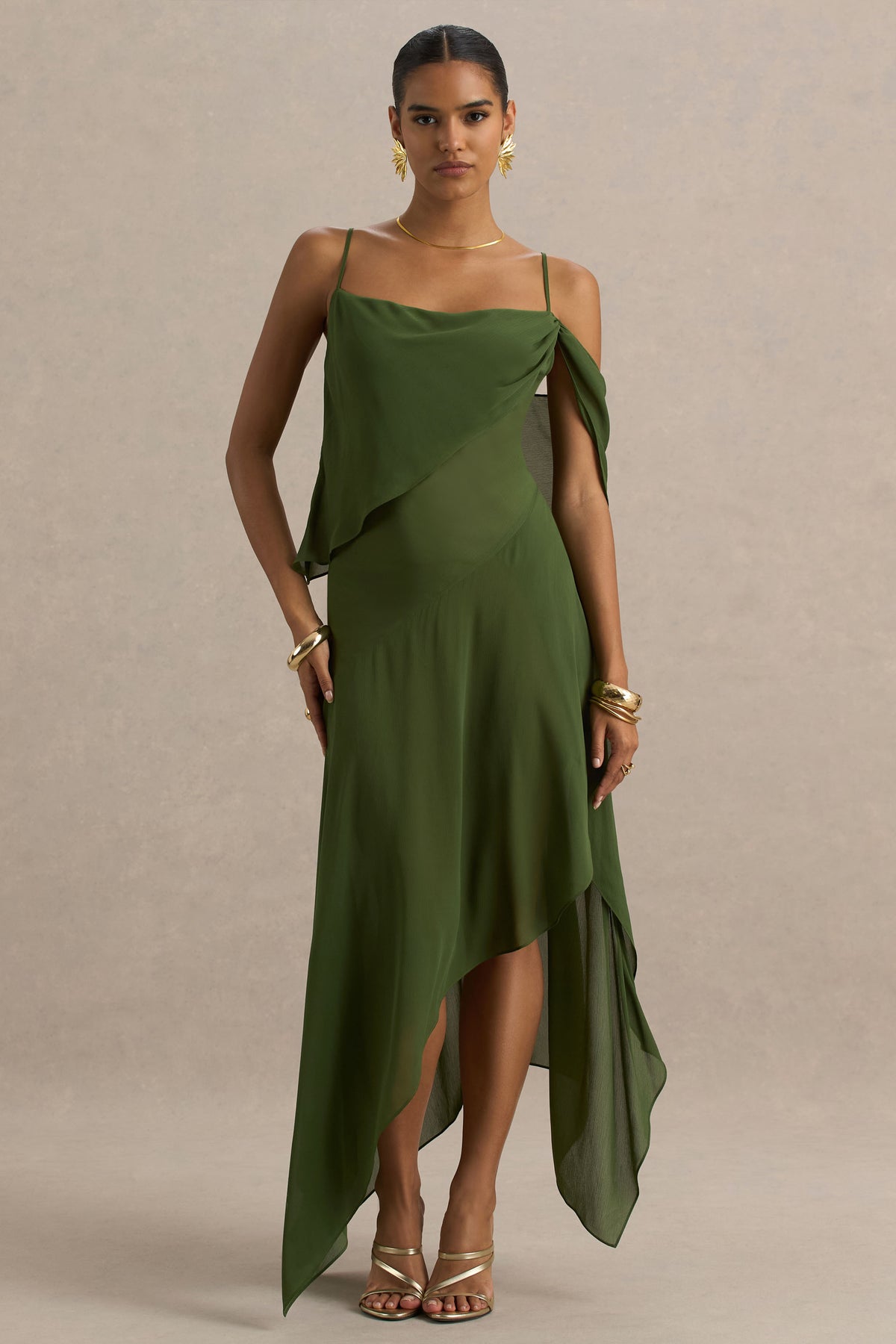 Floaty, feminine, and full of drama, Tiara is elegance in motion with a touch of modern edge. Crafted from our premium green woven, this midi dress flows with every step, creating a silhouette that’s both ethereal and eye-catching. The asymmetric neckline adds a contemporary twist, while adjustable cami straps ensure the perfect fit. Complete with draped detailing that flatters and enhances your figure, softly cinching the waist before cascading into a fluid hanky hemline. Designed to move beautifully and make an entrance, Tiara is your go-to for garden parties, weddings, and sunset soirees.